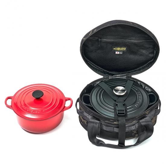 ルクルーゼやストウブの20cm、22cmや8インチ程度のダッジオーブン用キャリングケースになります。