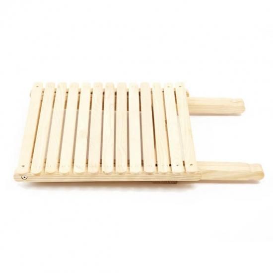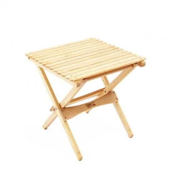 脚を折り畳むと全体がフラットになり、持ち運び、収納に便利で車に入れておけばいつでも使えます。BYER社の椅子やコットのサイドテーブルとしても丁度いい高さです。