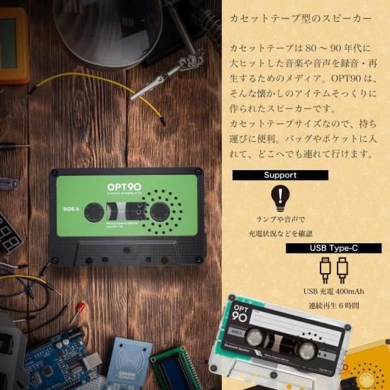 カセットテープを知っている方は「懐かしい!」、知らない方は「レトロで可愛い!」と思うこと間違いなし。カセットテープそっくりに作られたスピーカーです。カセットテープは80〜90年代に大ヒットした音楽や音声を録音・再生するためのメディア。そんな懐かしいアイテムがポータブルスピーカーになりました。Bluetooth接続・microSDカードに対応。収納ケースはスタンドしても使えます。インテリアとして楽しむことはもちろん、あえて持ち歩いてみるのも◎レトロな見た目&レトロな音質をぜひ楽しんでください!贈り物にもおすすめです。