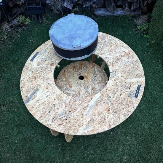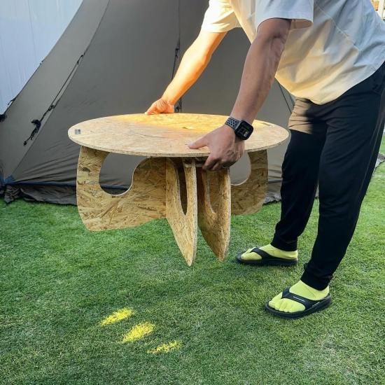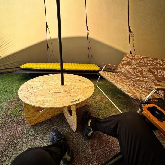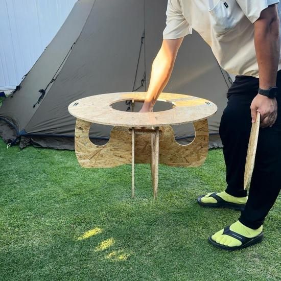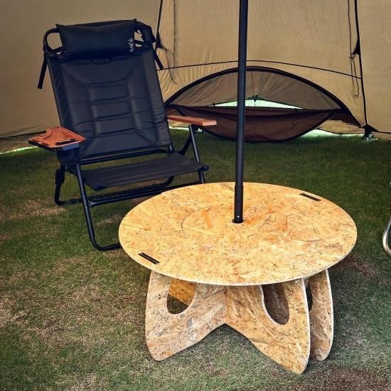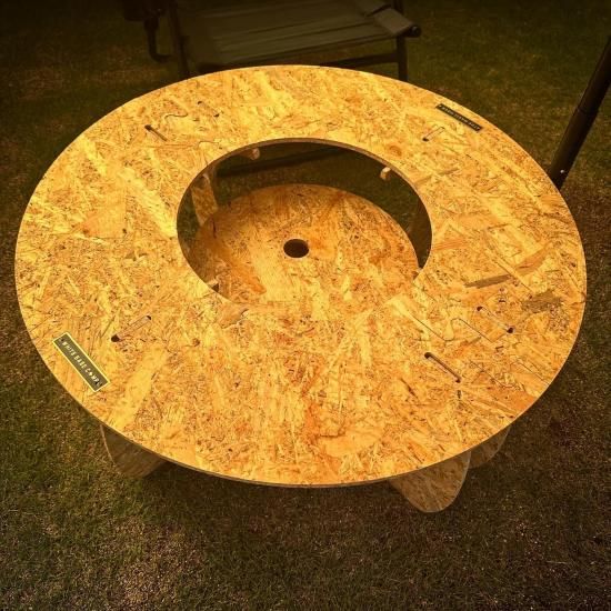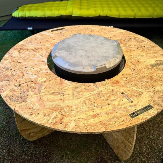 丸くくり抜かれた天板は塞ぐこともできますので、普通にキャンプテーブルとしても使えます。