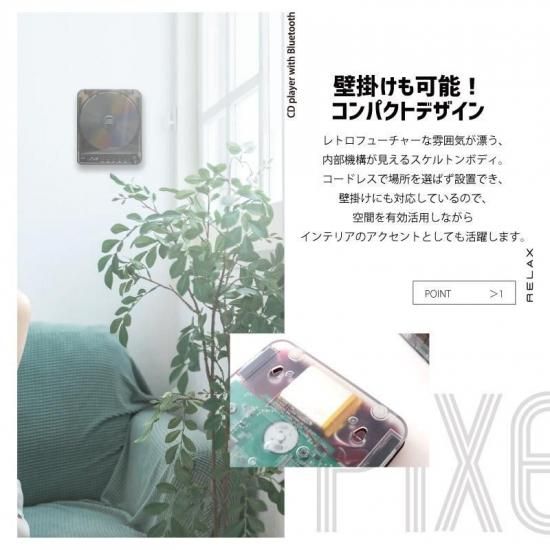 レトロな雰囲気と最新機能が融合した、おしゃれなCDプレーヤー。レトロフューチャーな雰囲気が漂う、内部機構が見えるスケルトンボディ。透明感のあるボディは、光の反射で様々な表情を見せ、お部屋のアクセントになります。壁掛けも可能なコンパクト設計。CDの再生はもちろん、Bluetoothでワイヤレススピーカー、イヤホン、またはヘッドセットなどに接続可能です。お気に入りの音楽を、こだわりの音質で楽しむことができます。レトロなデザインと最新機能を兼ね備えた「PIXEL TUNES CDプレーヤー」は、自分用にはもちろん、音楽好きの友人や家族へのプレゼントにもおすすめです。