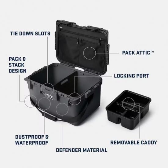 防塵、防水で、事実上破壊不可能な性能で、取り外し可能なカーゴトレイと仕切り板が付いているためボックス内を整理して収納できます。キャンプ用パントリー、カメラケース、タックルボックスとして最適なアイテムです。
