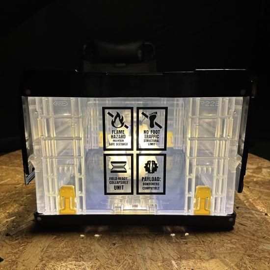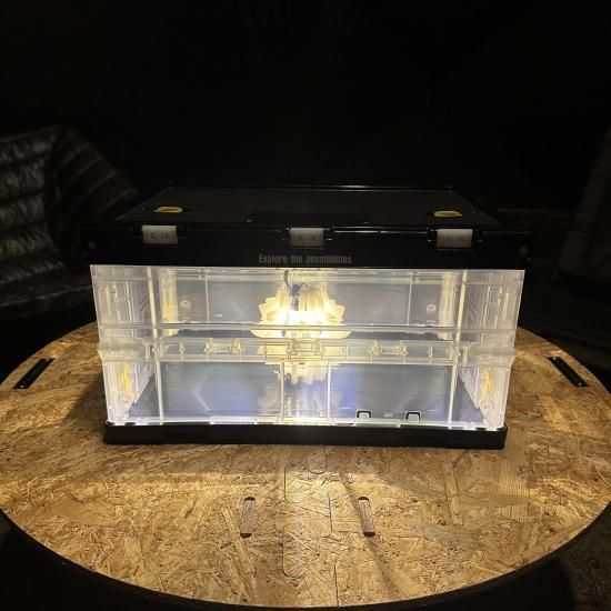 コンテナなので普通に道具を入れるも良し、材質がクリアなのでライトを入れて楽しむのも良し、使い方は自由で可能性を探してみてください。